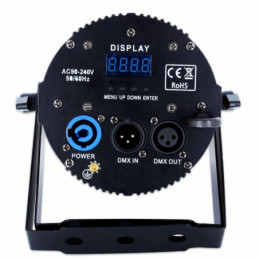 Le projecteur led Power Lighting SPOT LED 40W RING st un projecteur doté d'une LED de 40W Quad produisant un faisceau très fin hyper pratique pour éclairer une boule à facette, une piste de danse ou des tables de discothèque. Avec sa palette de couleurs variées et son anneau très tendance il permet de créer de sympathiques ambiances avec en prime une puissance non négligeable. Ses nombreux programmes internes lui permettent de réaliser des effets pro très facilement. Notons aussi que le DMX lui permet un chainage multiple pour des applications pro et pratiques.