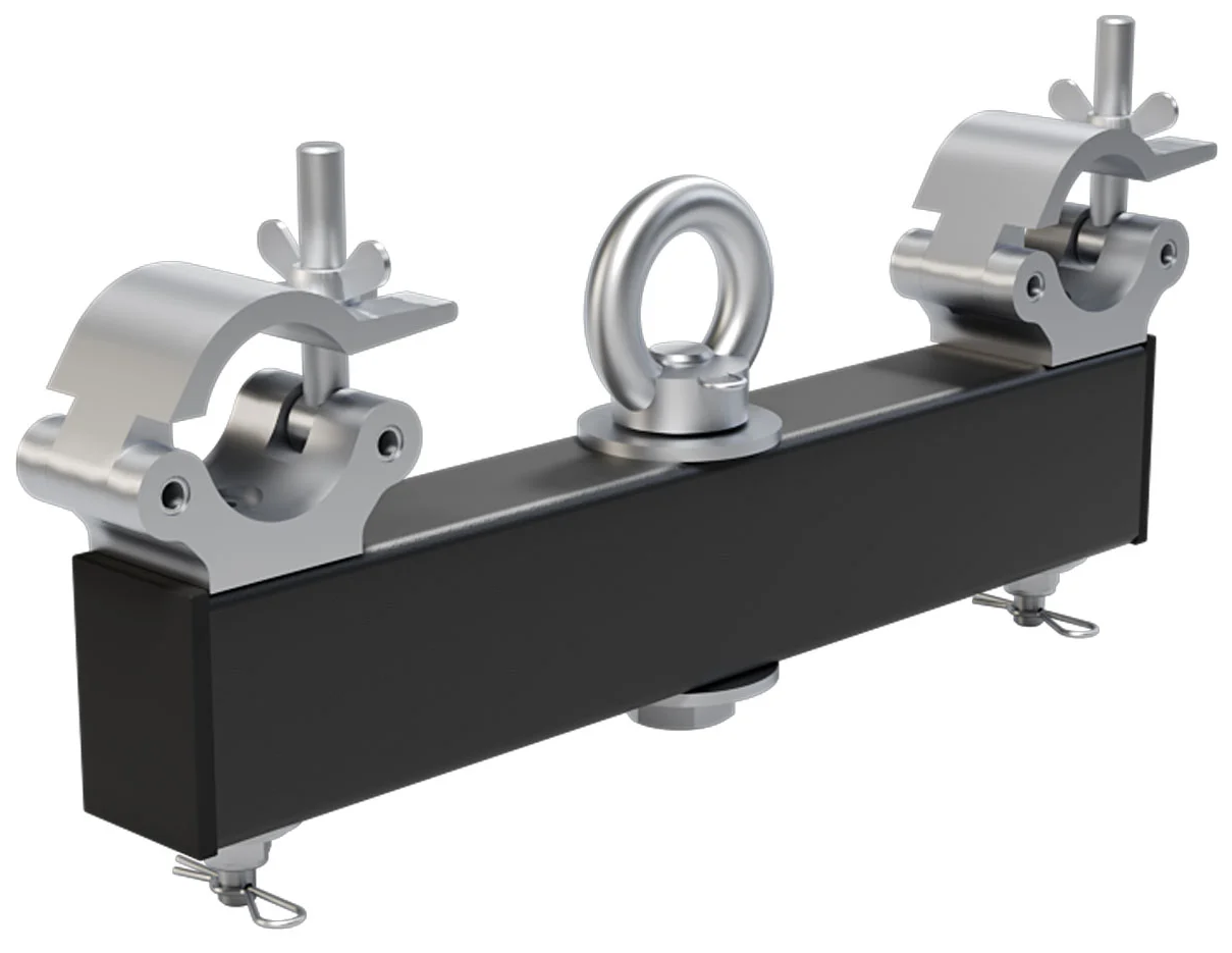 La sécurité apportée par la ConteStage SPTE390 repose d’abord sur son architecture de fixation. Le double collier pour tubes de Ø50 mm crée une prise répartie sur la poutre QUATRO39, ce qui aide à stabiliser le point de suspension et à répartir les efforts sur la structure aluminium. L’œillet permet ensuite le raccordement d’une élingue certifiée, dans une logique de levage claire et conforme aux pratiques professionnelles. L’utilisateur dispose ainsi d’un élément pensé pour la suspension et non d’une adaptation de montage, ce qui limite les écarts techniques dans les installations scéniques.