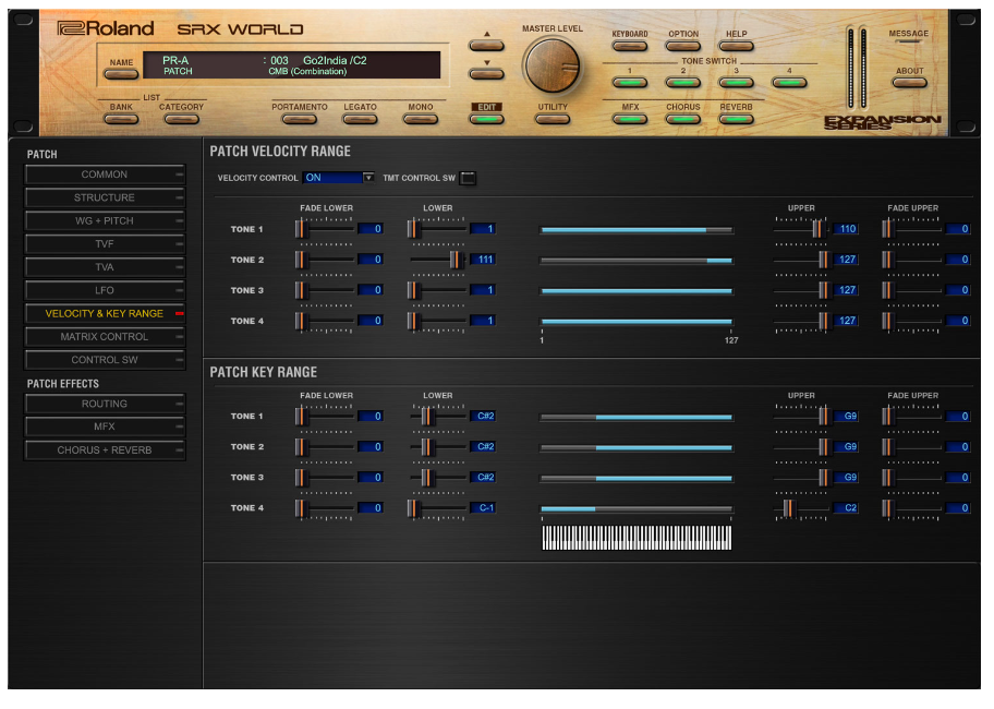 Chaque Plug-In SRX propose de très nombreux paramètres pour régler vos sons à votre convenance. Les boutons et curseurs des synthétiseurs physiques Roland actuels comme le SYSTEM-8 peuvent mapper les commandes des Plug-Ins, rendant vos réglages plus rapides et plus intuitifs.