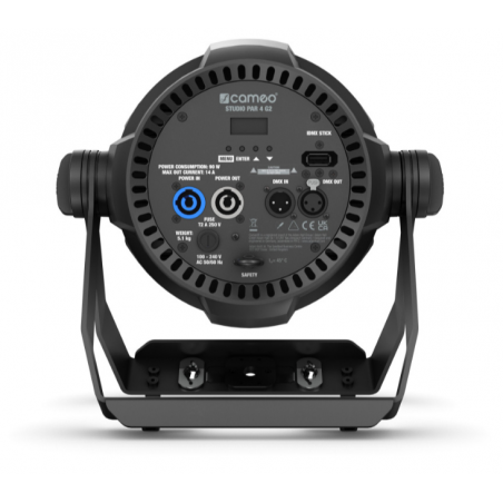 STUDIO PAR 4 G2 de chez CAMEO, projecteur PAR à LED avec 12 LED RGBW 4 en 1 de 8 W avec flux lumineux de 4 700 lm. Modulation de largeur d'impulsion au choix (jusqu'à 25 kHz) pour un éclairage sans scintillement.