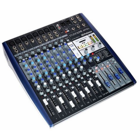Le PreSonus StudioLive® AR12c est une table de mixage analogique hybride conçue pour le live comme pour le studio. Dotée de 14 canaux, elle intègre une interface audio USB-C 14x4 à 96 kHz, huit préamplis micro XMAX, un enregistreur SD stéréo, des effets numériques intégrés, et un canal Super Channel multifonction avec Bluetooth. Elle est livrée avec Studio One Pro, pour un enregistrement professionnel dès la première utilisation. Idéale pour les musiciens, podcasteurs et créateurs de contenu exigeants.