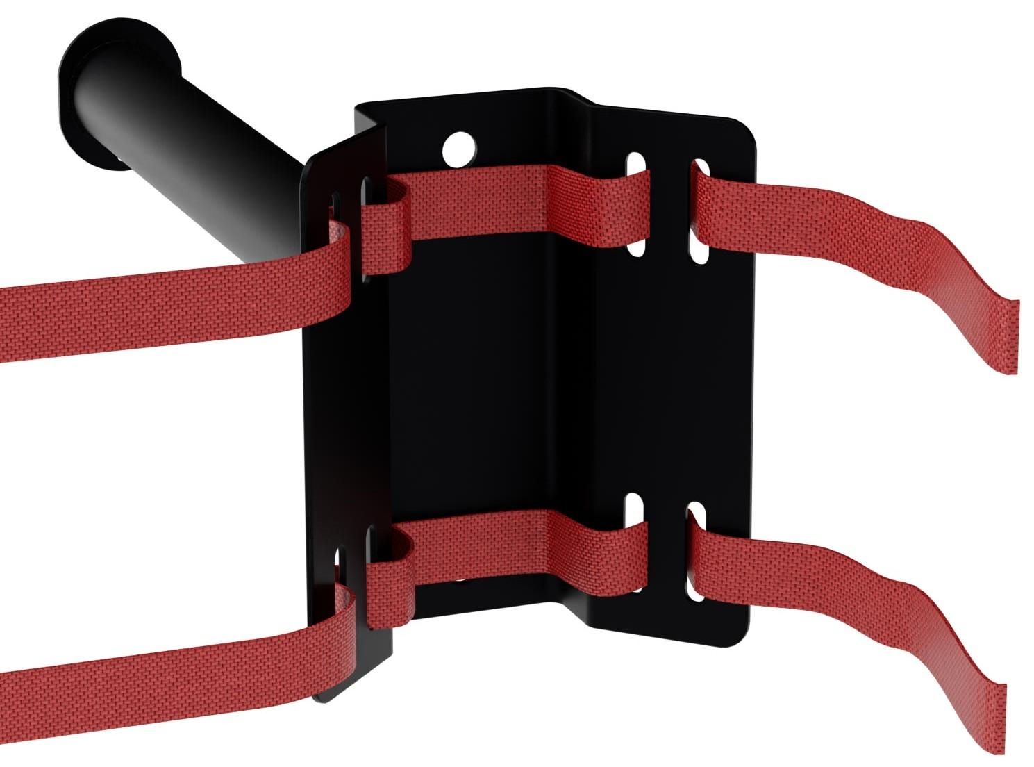 Le Hilec SUP-TreeBar se fixe à l’aide de sangles robustes fournies avec le produit. Il suffit d’enrouler les sangles autour du poteau ou de l’arbre, puis de les serrer fermement. Aucun outil n’est nécessaire, ce qui facilite les installations temporaires en extérieur. Pour une sécurité optimale, l’usage d’élingues est indispensable.