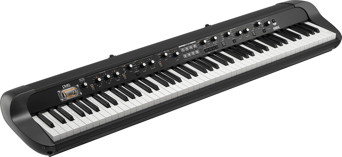 Piano numérique Korg SV2 88 notes Entrez dans l'univers d'un piano d'une rare perfection, offrant des sonorités de pianos acoustiques et une vaste palette de sonorités vintage hors du commun. Le SV-1 est le seul piano à avoir reçu la note maximum dans la revue Diapason et de ce fait il a obtenu le Diapason d'Or. La célèbre gamme des pianos Vintage SV est heureuse d'accueillir les nouveaux SV2 et SV2S. Dix fois plus d'échantillons, des modélisations d'amplis, de nombreux effets et une banque de sons incroyablement réalistes, le tout dans un design toujours aussi élégant, les adjectifs ne manquent pas pour ces magnifiques instruments.