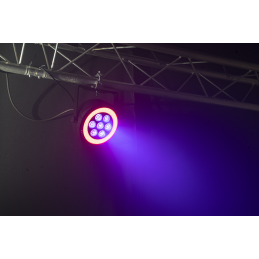 Projecteur Ibiza Light THINPAR-LED-RING extra plat équipé de 7 LED RGBW 4-EN-1 de 6W + 48 LED SMD.