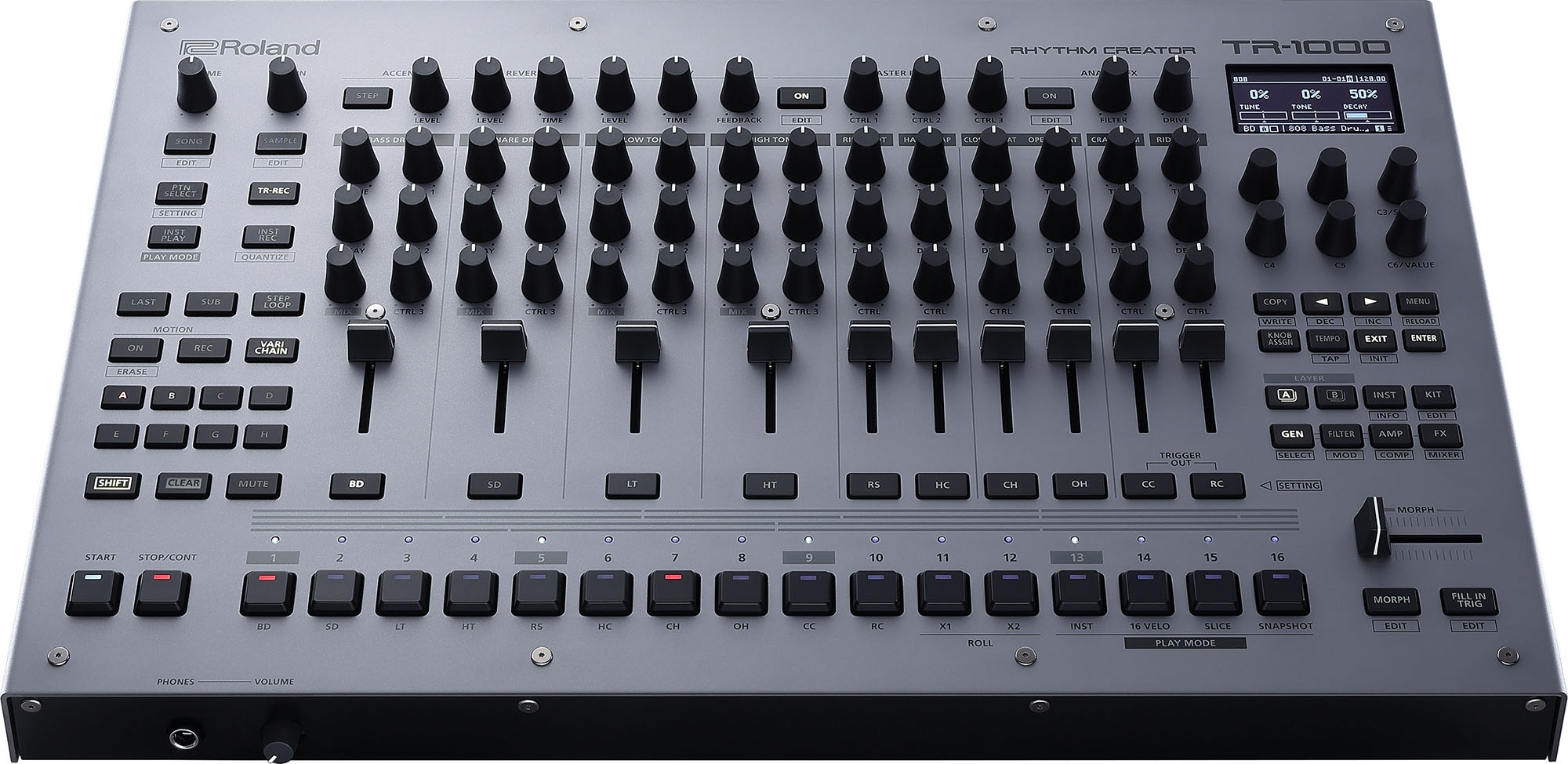 La Roland TR-1000 Rhythm Creator est une boîte à rythmes professionnelle hybride pour les musiques électroniques. Elle intègre les sons cultes des TR-808 et TR-909, des moteurs FM et PCM, ainsi que 2500 sons et 64 Go de mémoire. Son séquenceur avancé, ses contrôleurs physiques et ses effets analogiques la rendent idéale pour la scène et le studio. Conçue pour les producteurs et musiciens exigeants, elle allie puissance sonore, ergonomie de jeu et innovation technologique.