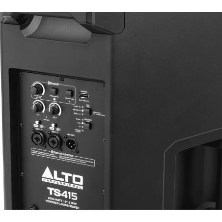 Enceintes TS415 de chez Alto - 15" bi-amplifiée 1250W Bluetooth. Dans la lignée du formidable succès de la série TS3, ces nouvelles enceintes présentent une puissance accrue allant jusqu’à 1250W RMS (pour les TS412 et TS415) intègrent un tout nouveau circuit DSP afin d’obtenir un son de haut niveau pour n’importe quelle application, ainsi qu’un module Bluetooth autorisant le streaming audio via un appareil Bluetooth compatible, la liaison entre deux enceintes et le contrôle des enceintes via l’application gratuite Alto App