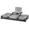 Le plateau coulissant réglable permet d’intégrer un ordinateur portable directement au-dessus du setup DJ. Cette solution évite l’ajout d’un support externe et optimise l’espace de travail. Elle facilite l’accès aux logiciels DJ et améliore l’ergonomie lors des prestations, tout en conservant une structure compacte et adaptée au transport professionnel.