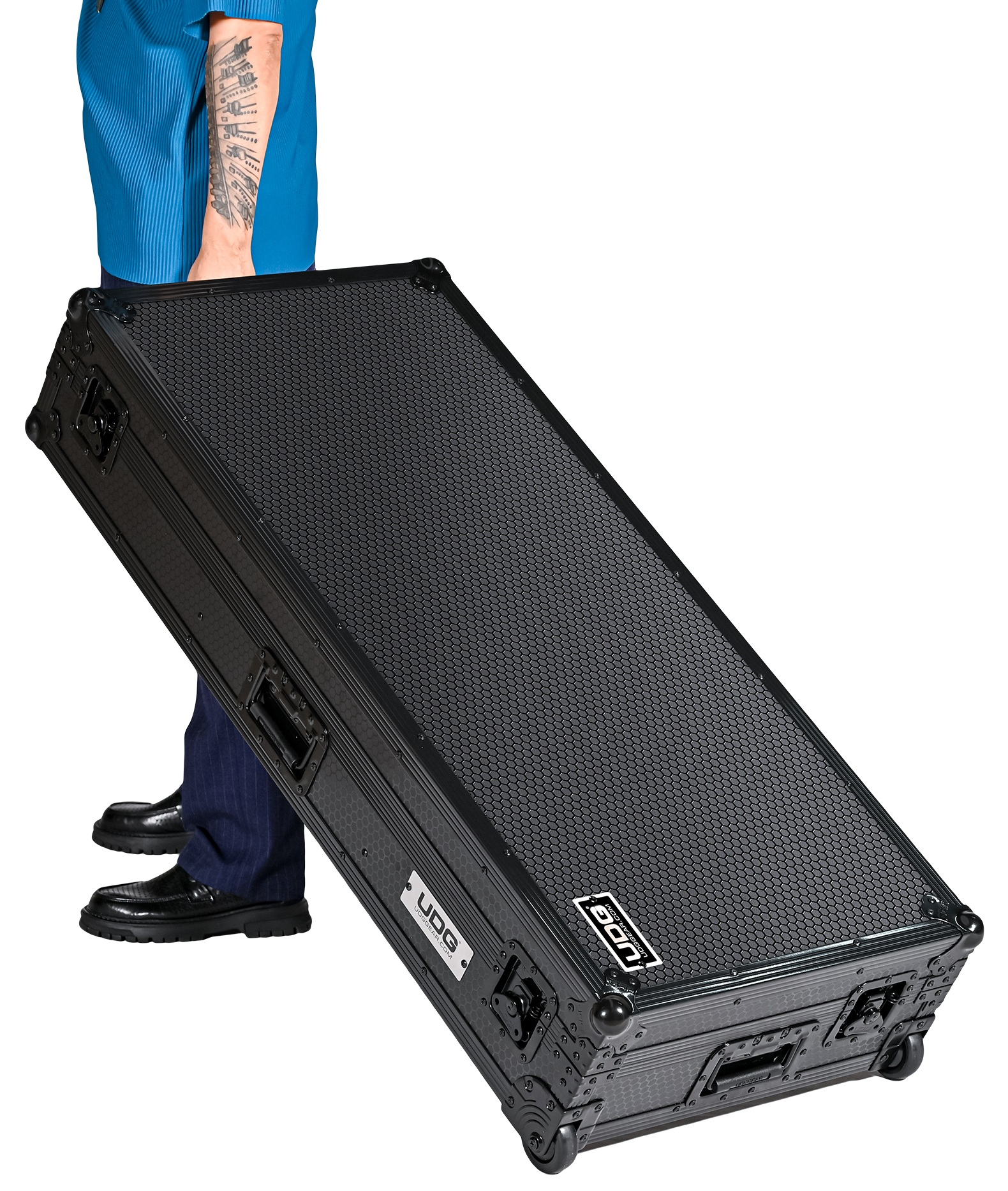 Avec un poids de 25 kg, ce flight case DJ est équipé de roulettes d’angle intégrées dotées de roulements de haute qualité. Cette configuration permet un déplacement fluide sur différentes surfaces, réduisant l’effort physique lors des chargements et déchargements.