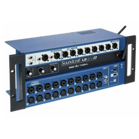 La Soundcraft Ui24R est une console de mixage et d'enregistrement 24 canaux en rack, équipée d'entrées/sorties flexibles, d'un son de première qualité, d'un contrôle sans fil intuitif et d'une fiabilité à l'épreuve de la route, dans un design épuré. Le système peut aussi servir de rack de scène et être contrôlé par 10 appareils via Ethernet ou par le Wi-Fi dual-band intégré, avec contrôle à distance sans fil du mixage et de l'enregistrement multipistes, à partir de n'importe quel emplacement de la salle de répétition ou de concert