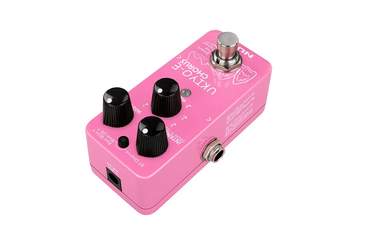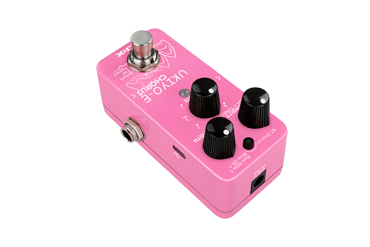 La pédale NUX UKIYO-E propose trois modélisations distinctes : ST Chorus, SCH-1 et CE-1. Ces effets recréent les sonorités analogiques classiques des années 80 et 90. Chaque mode peut être sélectionné via un commutateur rotatif situé sur la face avant de la pédale, offrant une grande flexibilité sonore aux musiciens.