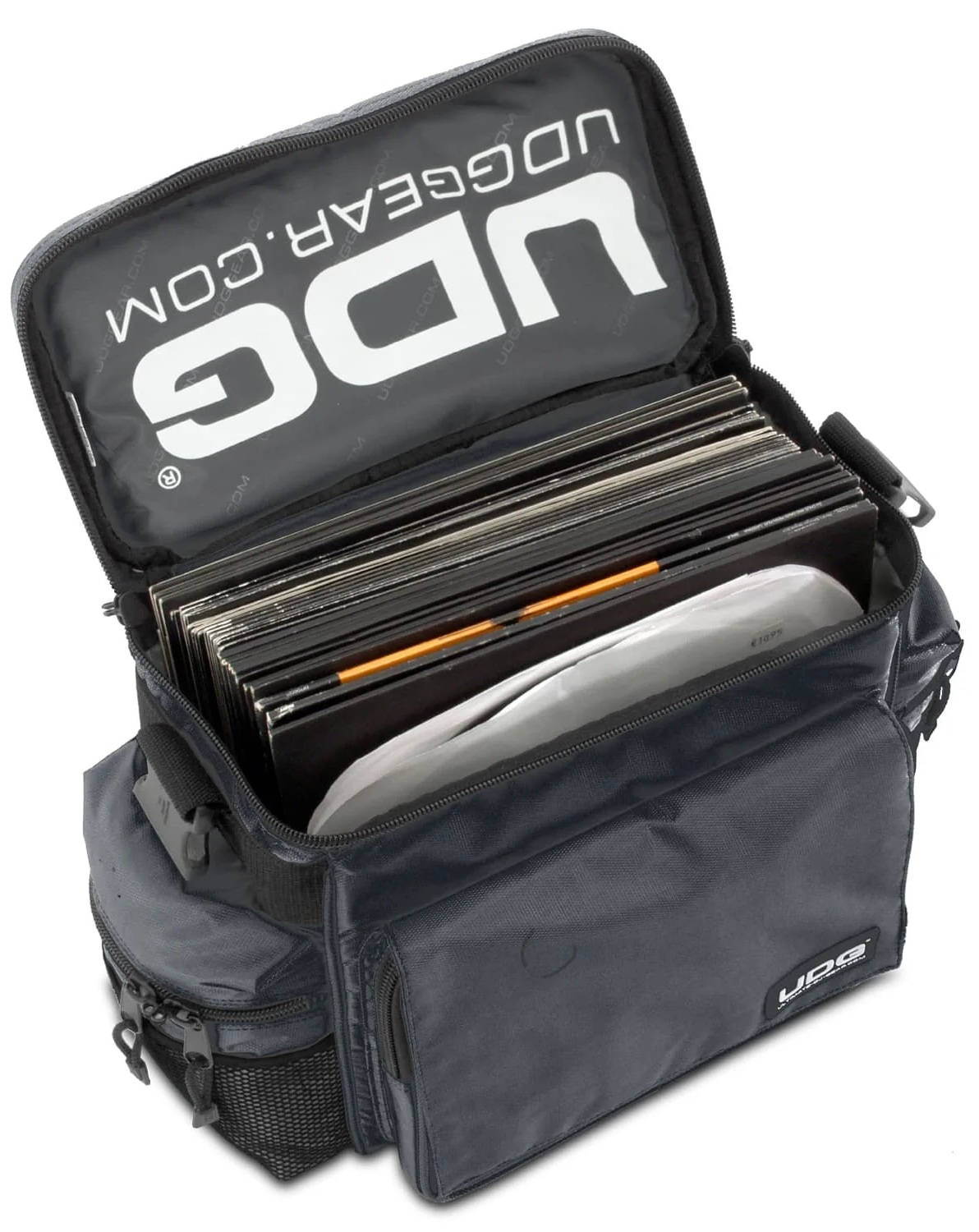 Le sac UDG Ultimate SlingBag MK2 permet de transporter jusqu’à 50 disques vinyles dans un compartiment principal renforcé. Son volume intérieur de 32 × 32 × 16 cm est pensé pour optimiser le rangement sans endommager les pochettes. Ce volume est également compatible avec deux pochettes CD rigides standards.