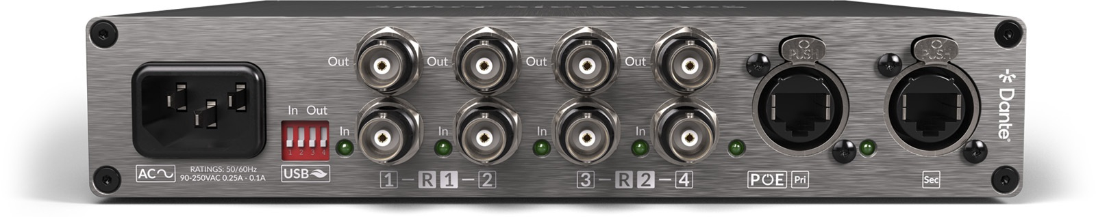 L’UMD192 accepte trois sources d’alimentation : secteur (via câble IEC fourni), USB et PoE. Il est possible de combiner le PoE avec l’alimentation secteur pour sécuriser le fonctionnement grâce à une alimentation redondante, très utile en live ou en broadcast.