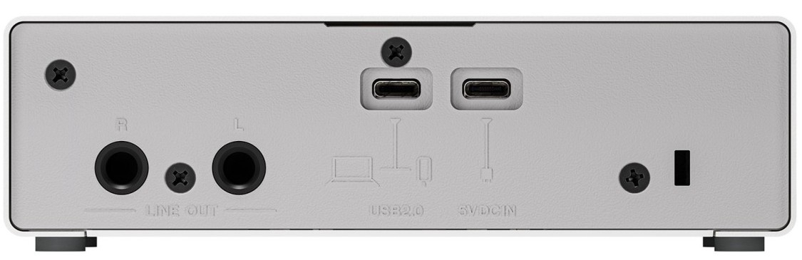 La Yamaha UR12 MK3 est équipée d’une connectique USB-C, assurant un transfert rapide et une compatibilité étendue avec les ordinateurs et tablettes modernes. Son alimentation via bus USB ou prise DC Type-C permet une utilisation flexible, en studio comme en déplacement.