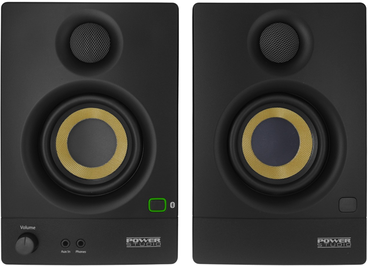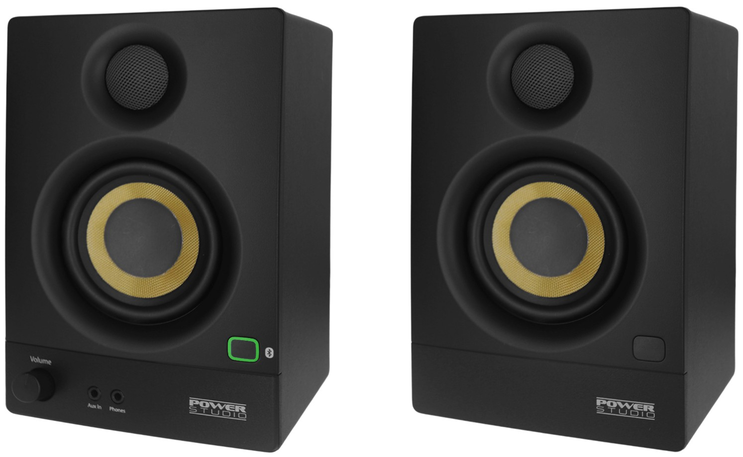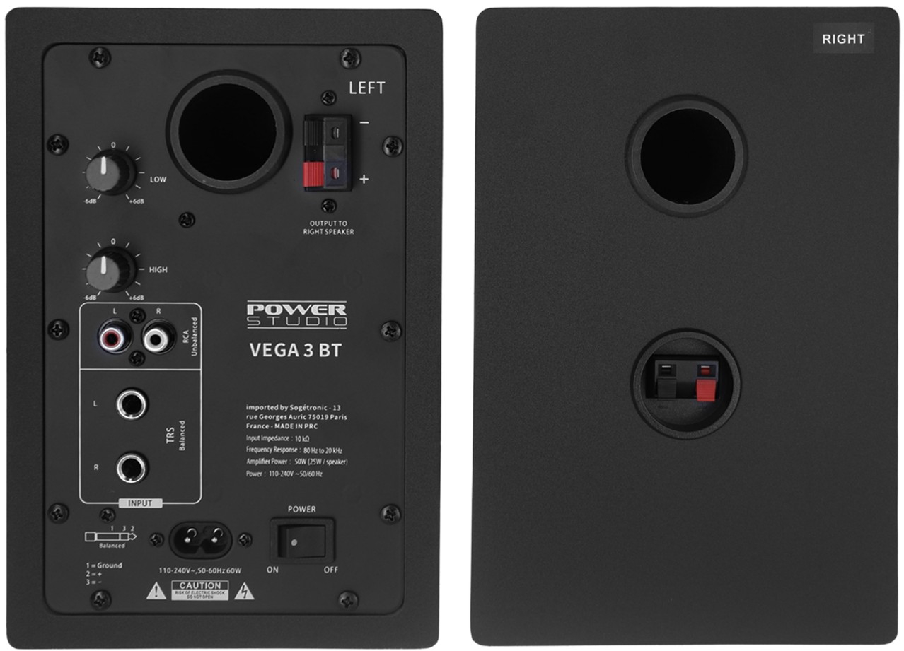 Le modèle Power Studio VEGA 3 BT est une enceinte de monitoring conçue pour les home studios et les espaces restreints. Son format compact intègre un woofer de 3,5 pouces et un tweeter de 1 pouce, assurant une reproduction sonore précise de 80 Hz à 20 kHz. L’amplification en Classe AB délivre 2x25 W pour un son fidèle et équilibré. Ces enceintes actives/passives disposent d'une connectique complète avec RCA, jack TRS, entrée AUX et Bluetooth intégré, favorisant une utilisation flexible. Les réglages de tonalité (graves et aigus ±6 dB) permettent d’ajuster le rendu selon l’environnement ou les préférences. Compatibles TWS, elles sont idéales pour le mixage, l'écoute multimédia ou le monitoring de proximité.