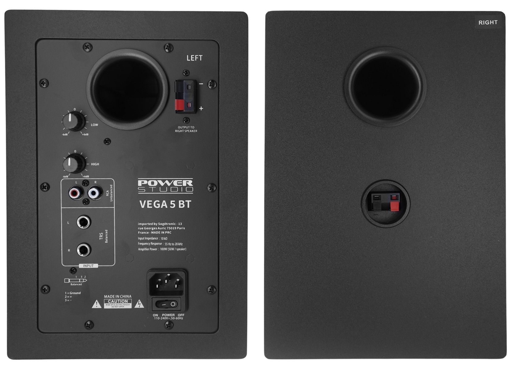 Le modèle Power Studio VEGA 5 BT est une enceinte de monitoring conçue pour les musiciens et producteurs exigeants. Dotée d’un woofer de 5,25 pouces, d’un tweeter de 1 pouce et d’une bi-amplification en classe D de 100 watts, elle délivre une restitution sonore puissante, claire et précise. Sa réponse en fréquence étendue de 55 Hz à 20 kHz permet une écoute fidèle, tandis que le Bluetooth intégré avec système TWS offre une connectivité moderne et pratique. La paire se compose d’une enceinte active et d’une passive, avec plusieurs entrées disponibles (TRS, RCA, mini-jack). Des réglages de tonalité graves/aigus et un niveau SPL maximal de 104 dB complètent l’ensemble. Parfaite pour le home studio avancé ou les installations nécessitant un monitoring dynamique.