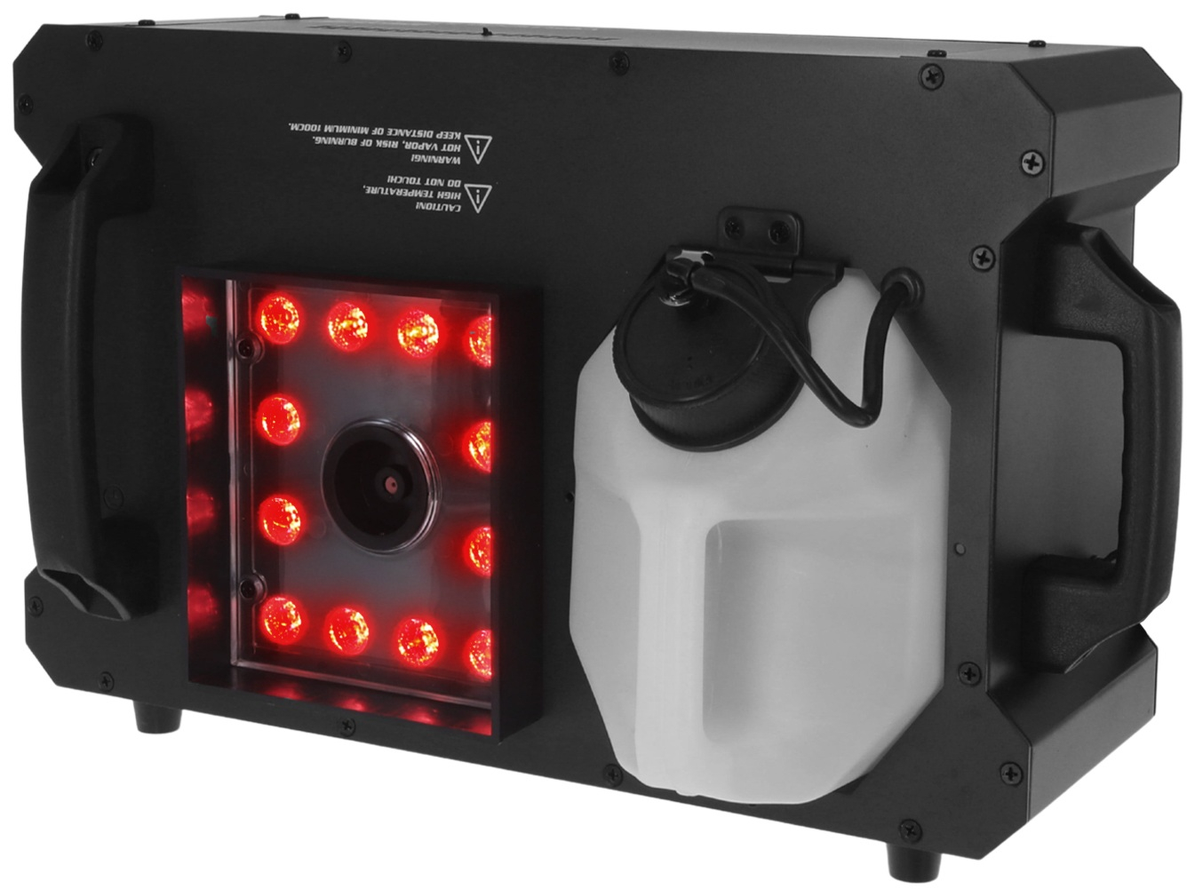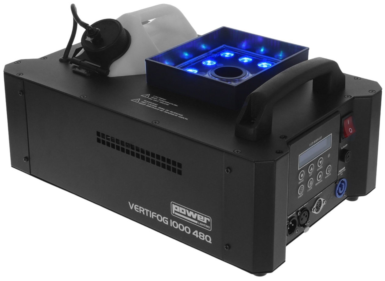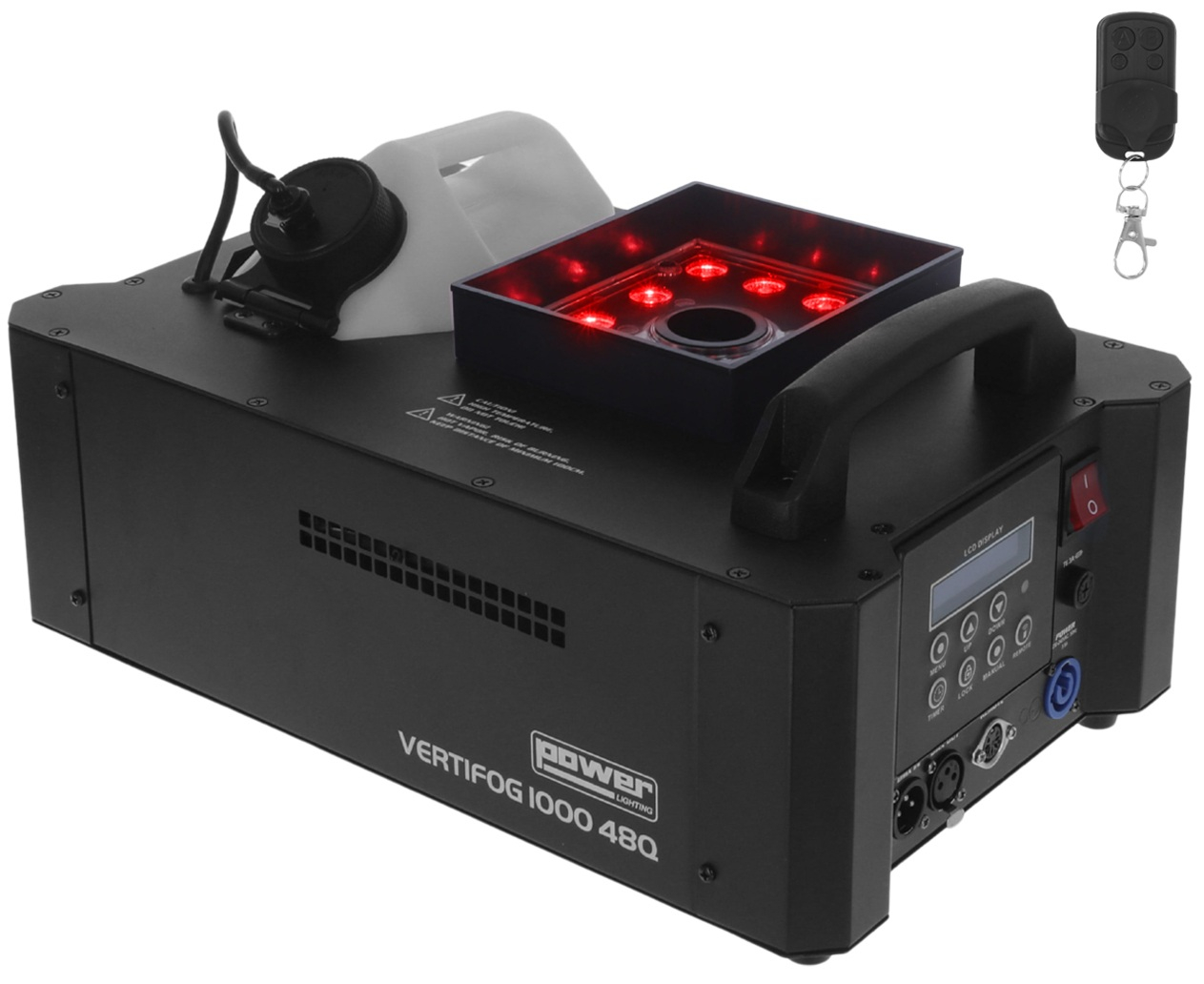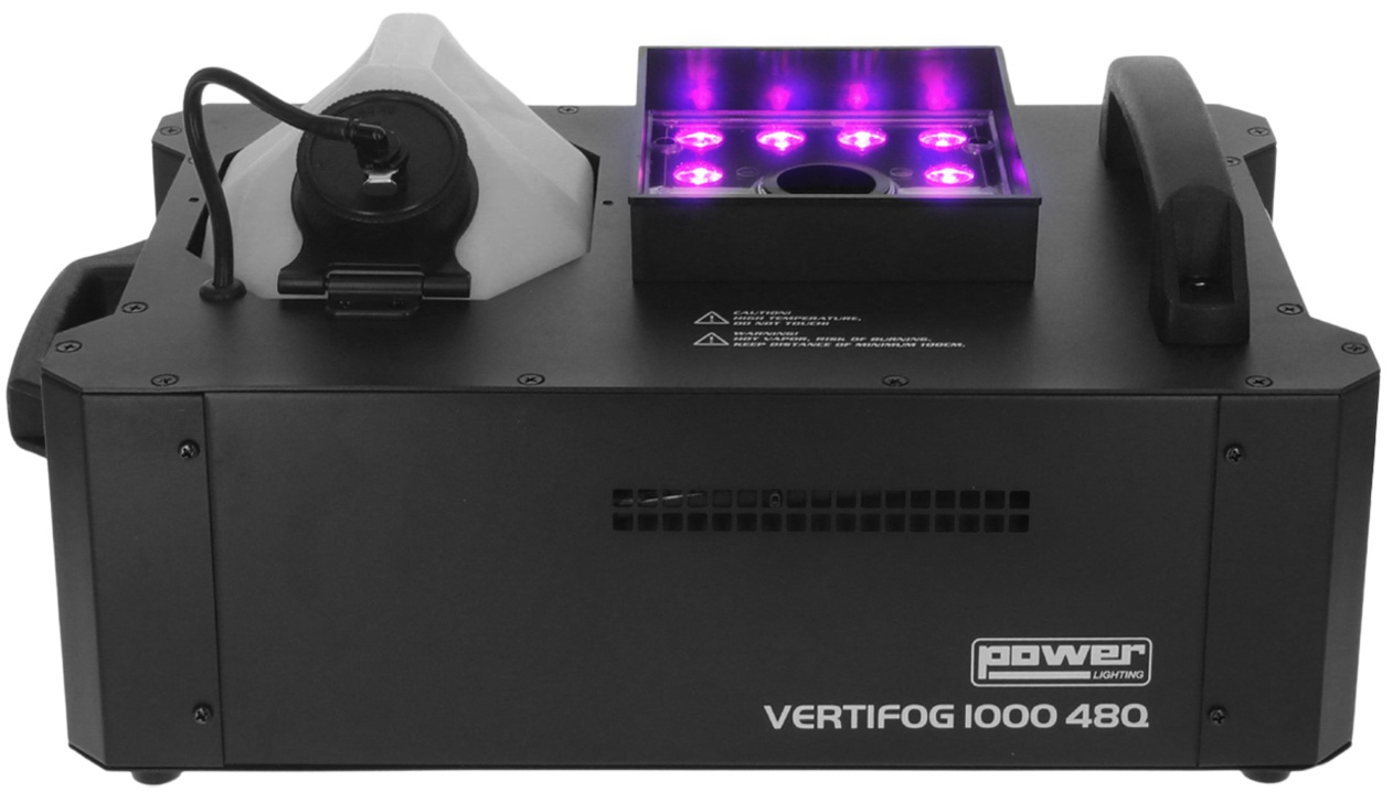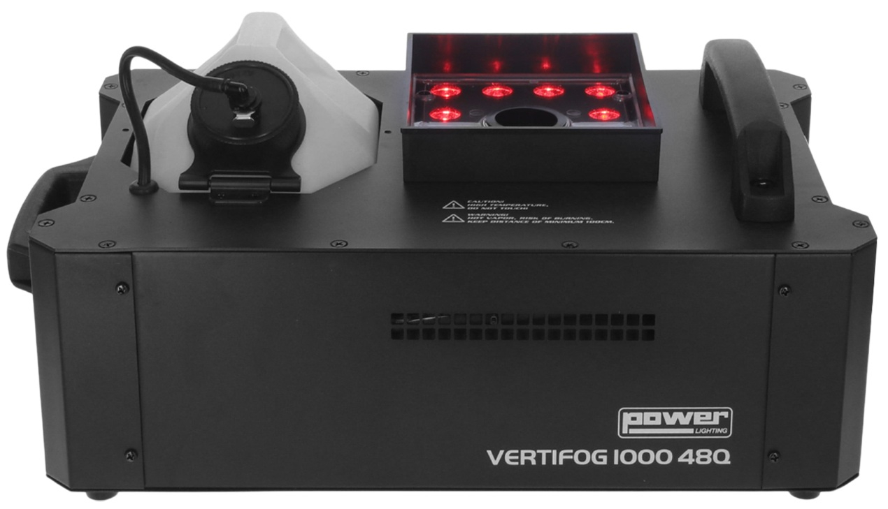 La Power Lighting VERTIFOG 1000 48Q embarque 12 LEDs RGBW 4-en-1 de 4 W chacune, générant un éclairage coloré puissant. Cette combinaison permet de créer des effets visuels synchronisés avec les jets de fumée, renforçant l’impact scénique. Grâce à la technologie RGBW, la palette de couleurs est large et homogène.