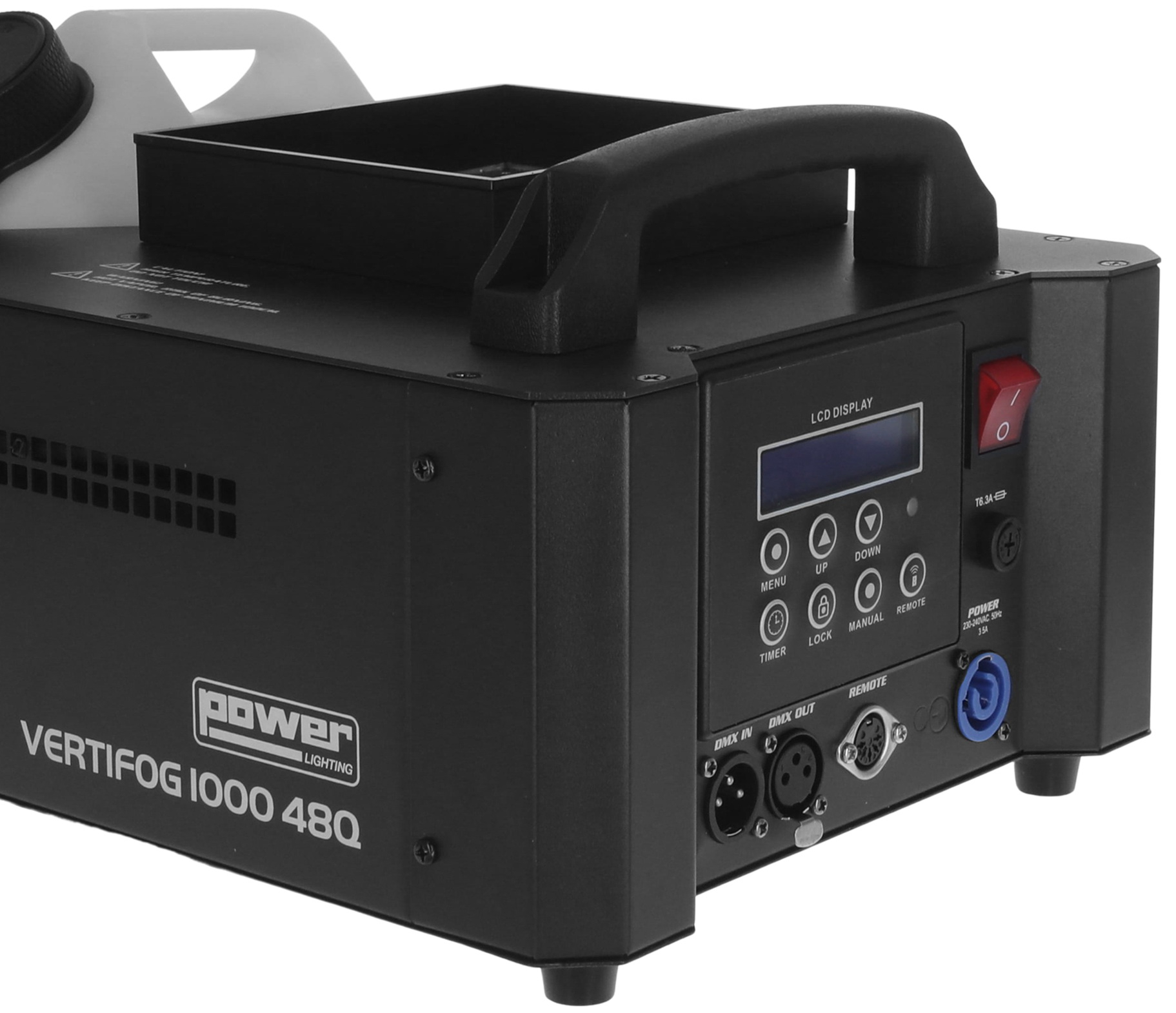 La Power Lighting VERTIFOG 1000 48Q nécessite un temps de chauffe de 3 minutes. Cette durée rapide permet une utilisation quasi immédiate lors d’un événement. Elle convient particulièrement aux installations scéniques dynamiques ou aux besoins de dernière minute.