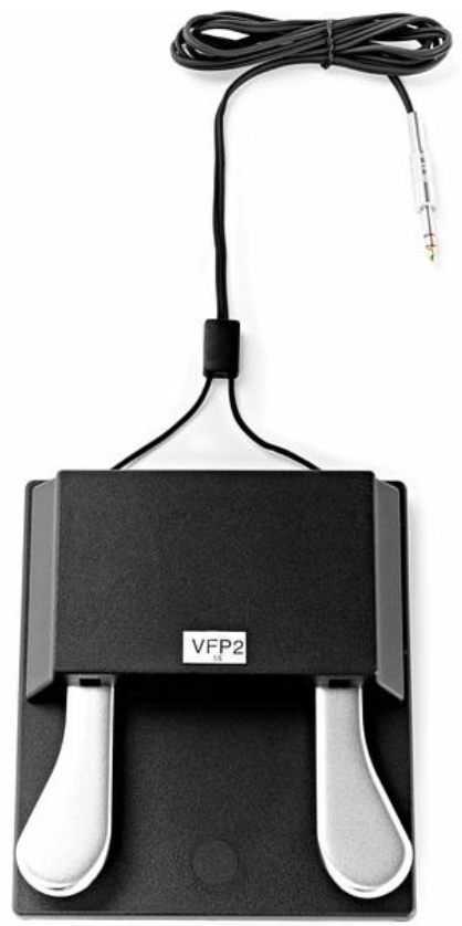 Le VFP2/15B combine une pédale de sustain principale et une pédale switch secondaire dans un seul boîtier. La pédale sustain agit sur la résonance des notes, tandis que la seconde peut être assignée à une fonction supplémentaire selon le clavier ou le piano numérique utilisé.