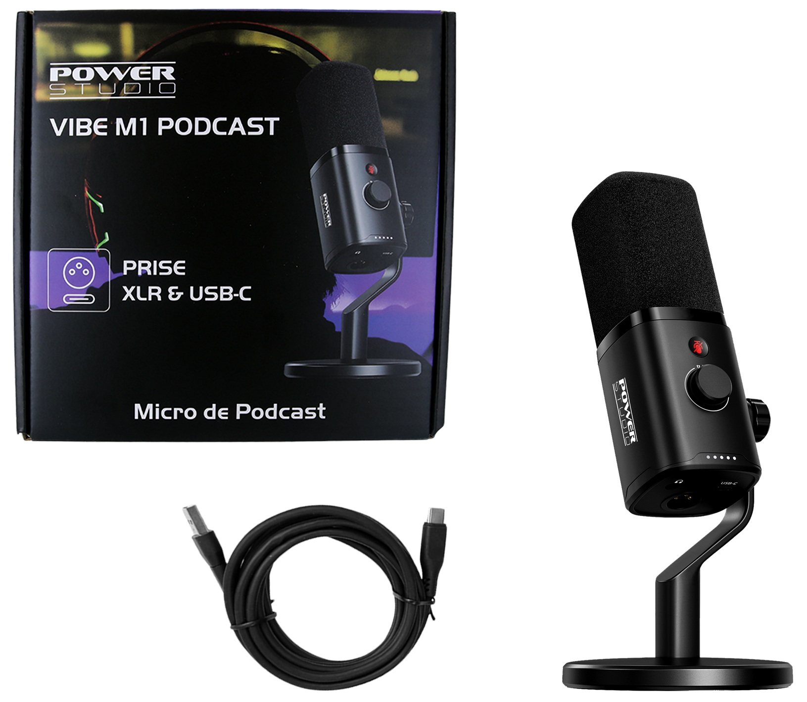 Le Power Studio VIBE M1 PODCAST est un microphone de podcast conçu pour les créateurs de contenu recherchant une solution fiable, évolutive et simple à mettre en œuvre. Grâce à sa double connectivité USB-C et XLR, il s’adapte aussi bien à un usage plug-and-play sur ordinateur qu’à une intégration avec une interface audio ou une table de mixage. Sa capsule dynamique cardioïde privilégie la voix parlée en limitant efficacement les bruits ambiants et les sons arrière. La restitution est claire, chaleureuse et intelligible, idéale pour le podcast, le streaming ou le gaming. Le contrôle du gain, le monitoring casque en temps réel et le bouton mute tactile offrent une maîtrise immédiate du signal. Sa conception robuste et ses réglages accessibles en font un microphone polyvalent pour les setups modernes.