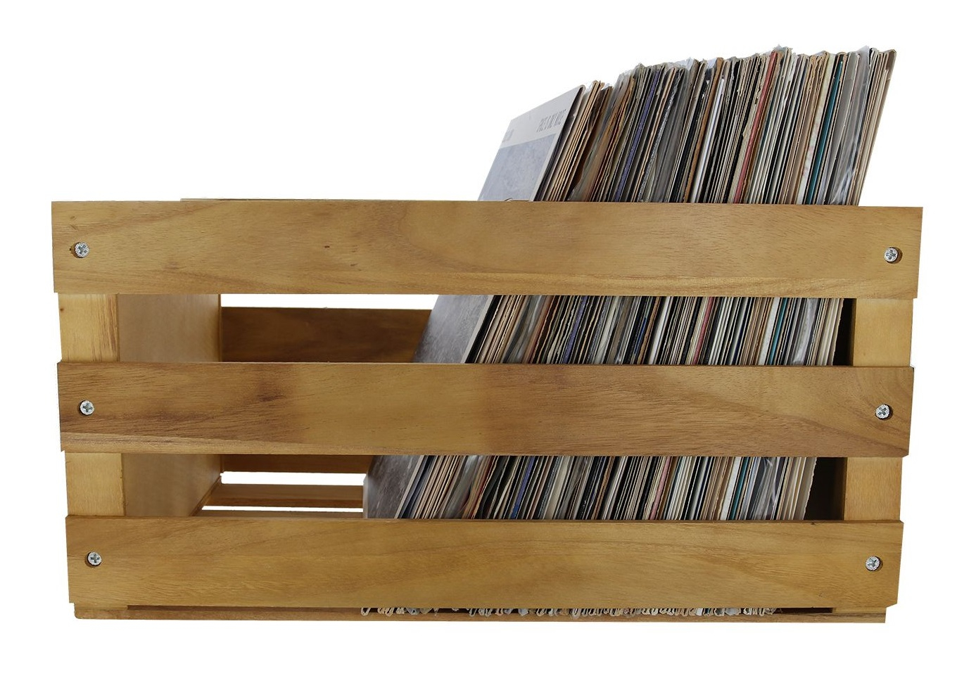Caisse de rangement en bois pour vinyles, facile à assembler (vis fournies) et pratique pour le rangement de vos vinyles. Fabriquée en bancoulier, elle peut contenir jusqu'à 120 vinyles.