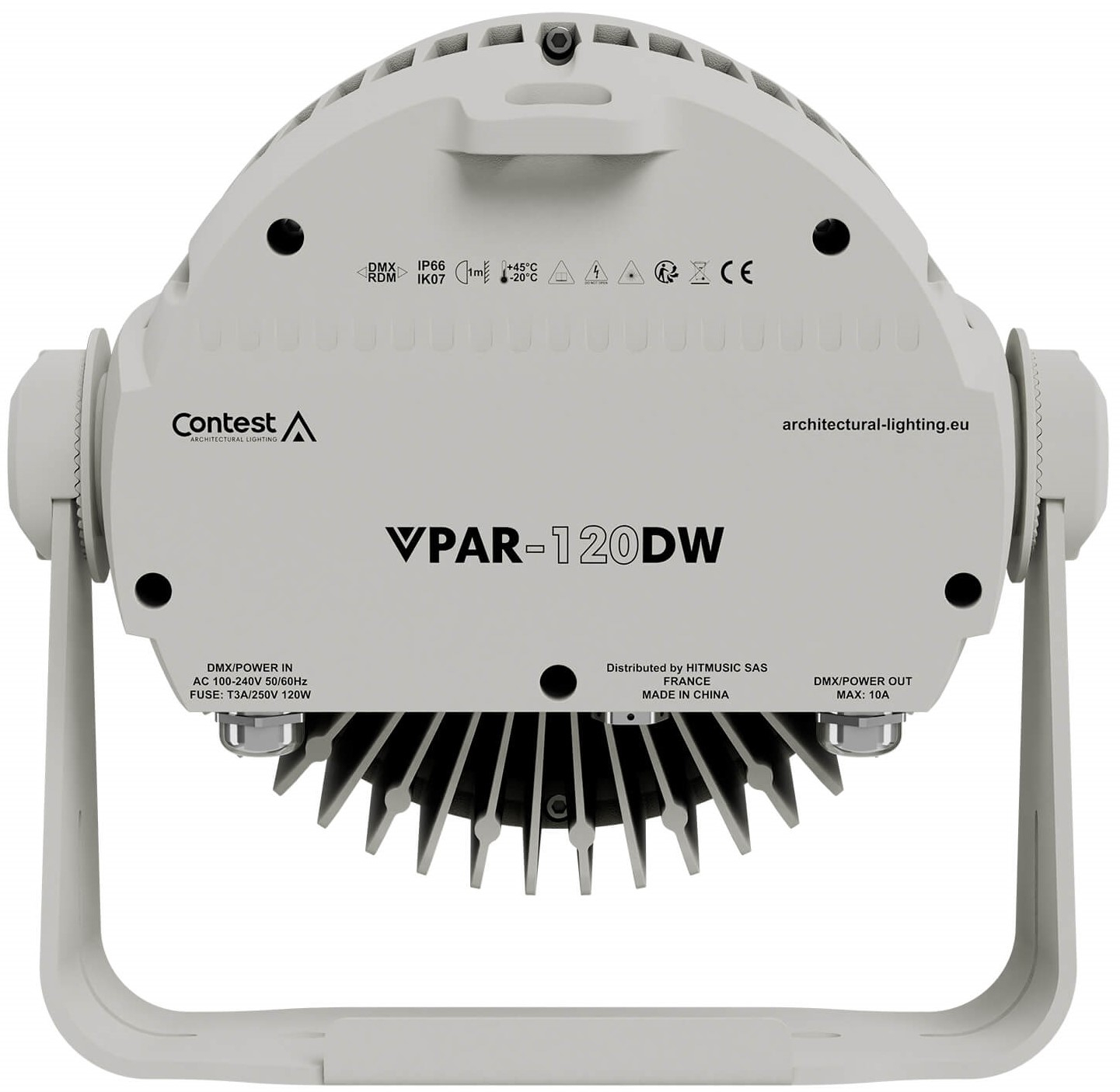 Le VPAR 120DW de Contest est un projecteur qui combine puissance (4669 lm), contrôle précis (IRC 96), et efficacité énergétique (120 W). Sa compacité cache une polyvalence incroyable grâce à ses connexions DMX, son IP66 résistant à l'eau et sa solidité IK07. Sa conception en fonte d’aluminium, peinte en gris blanc, allie robustesse et esthétique. Parfait pour des événements variés, ce projecteur offre des performances exceptionnelles et une fiabilité à toute épreuve.