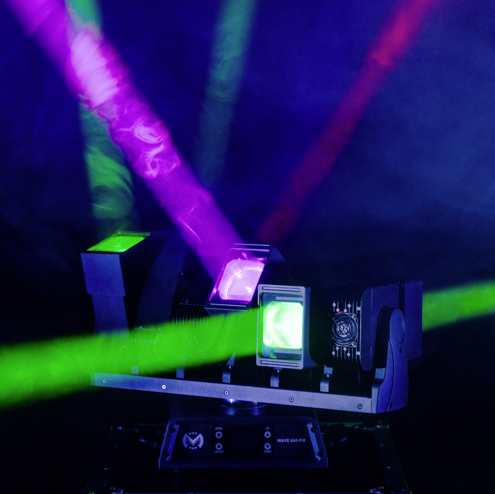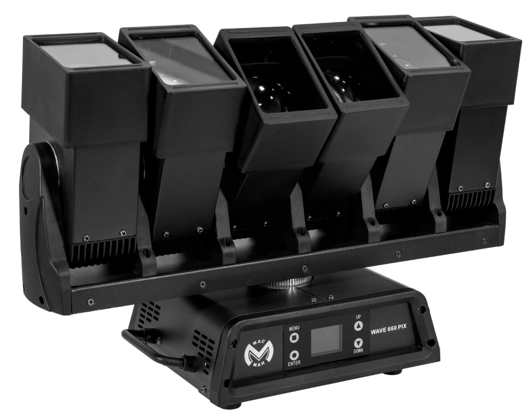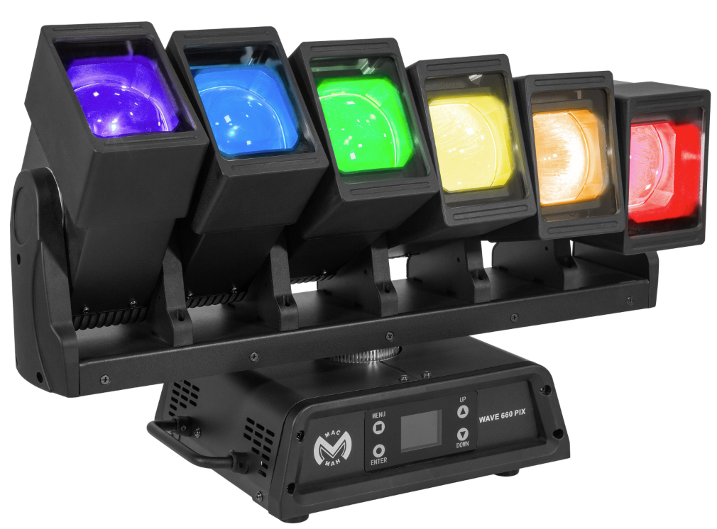 Le Mac Mah Wave 660 Pix s’appuie sur 6 LED RGBW de 60 watts chacune, permettant une intensité lumineuse puissante et une large gamme chromatique. Le système RGBW assure des couleurs précises, saturées et des transitions fluides. Chaque LED peut être contrôlée individuellement pour générer des effets visuels complexes.