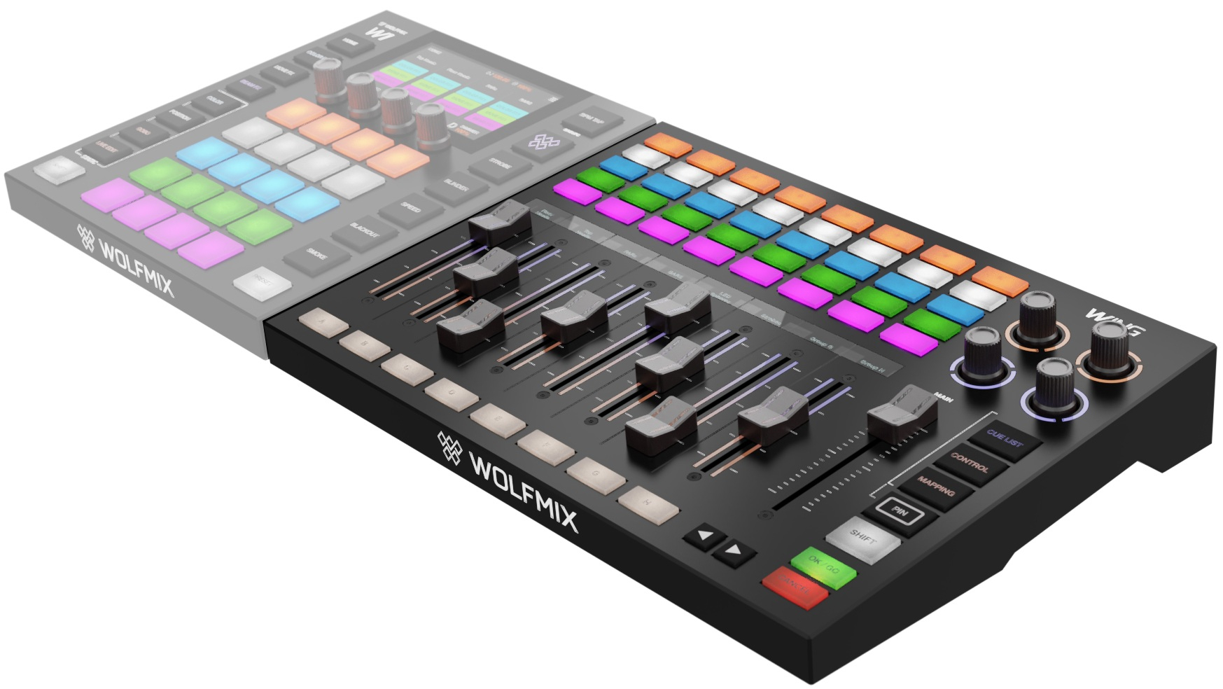 Le Wolfmix WING a été pensé comme une extension naturelle du Wolfmix W1. Une seule connexion permet d’ajouter quatre univers DMX supplémentaires et une surface de contrôle dédiée. Cette combinaison offre une solution évolutive sans complexifier l’installation.