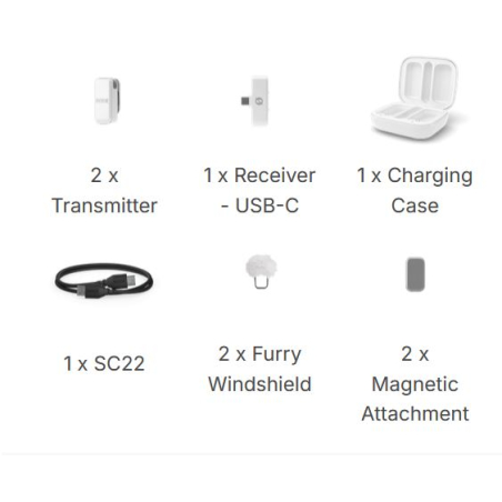 Le Rode Wireless Micro USB-C WH est fourni avec un étui de charge portable qui offre jusqu'à 21 heures d'autonomie, idéal pour les longues sessions de tournage. Chaque charge de l'étui permet de recharger les émetteurs plusieurs fois, ce qui est parfait pour les déplacements et les tournages sur plusieurs jours. Cette autonomie prolongée assure une disponibilité continue, sans dépendre de sources d’alimentation externes.