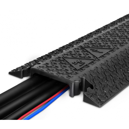 Grâce à ces dimensions, il est possible de protéger, par exemple, jusqu'à 5 câbles de micros ou câbles d'alimentation. Avec une capacité de charge d'environ 0,5 tonne par surface de 20 x 20 cm, les protections de câbles XPRESS peuvent supporter le poids de voitures standard, de chariots, de vélos, de fauteuils roulants et de piétons.