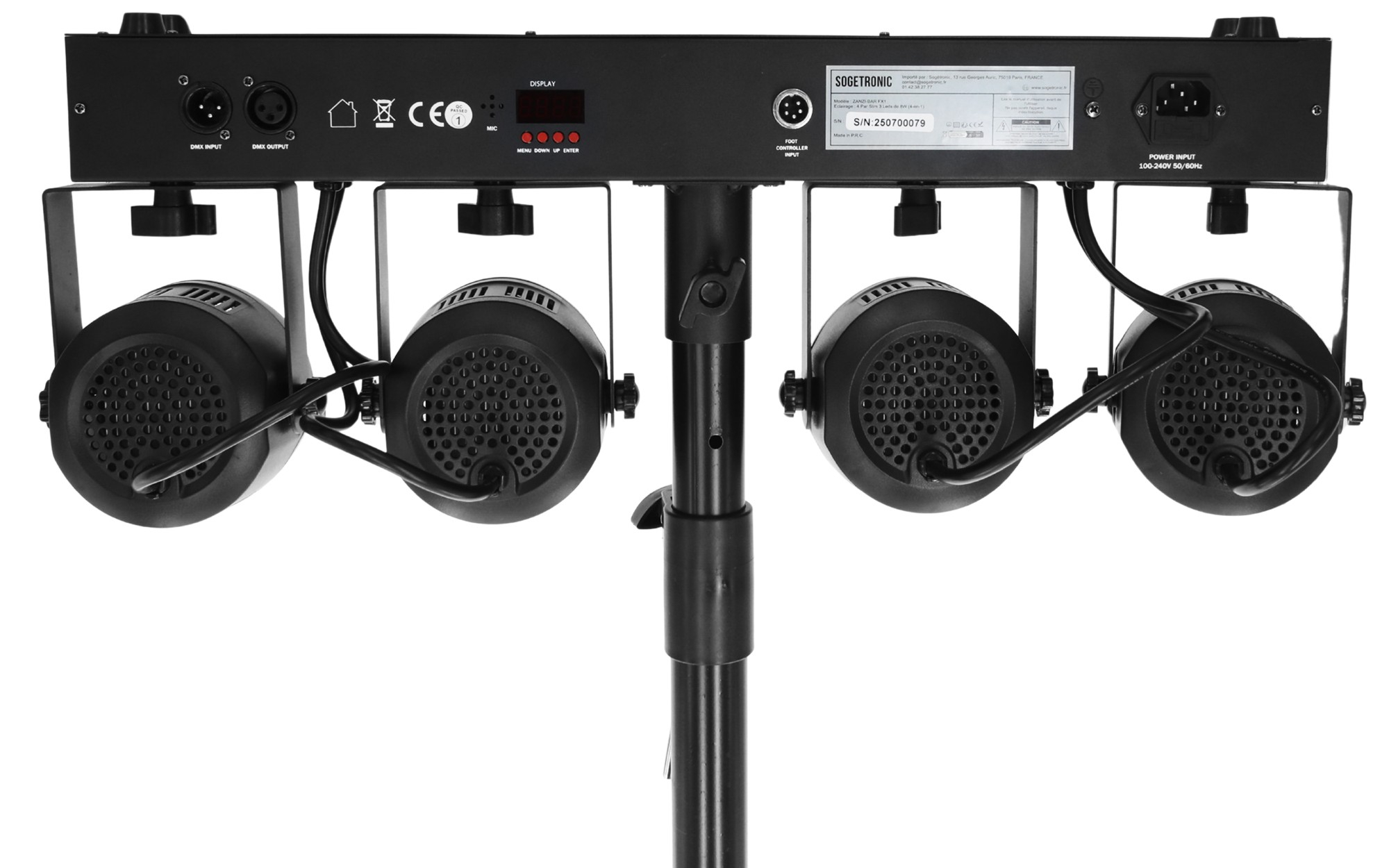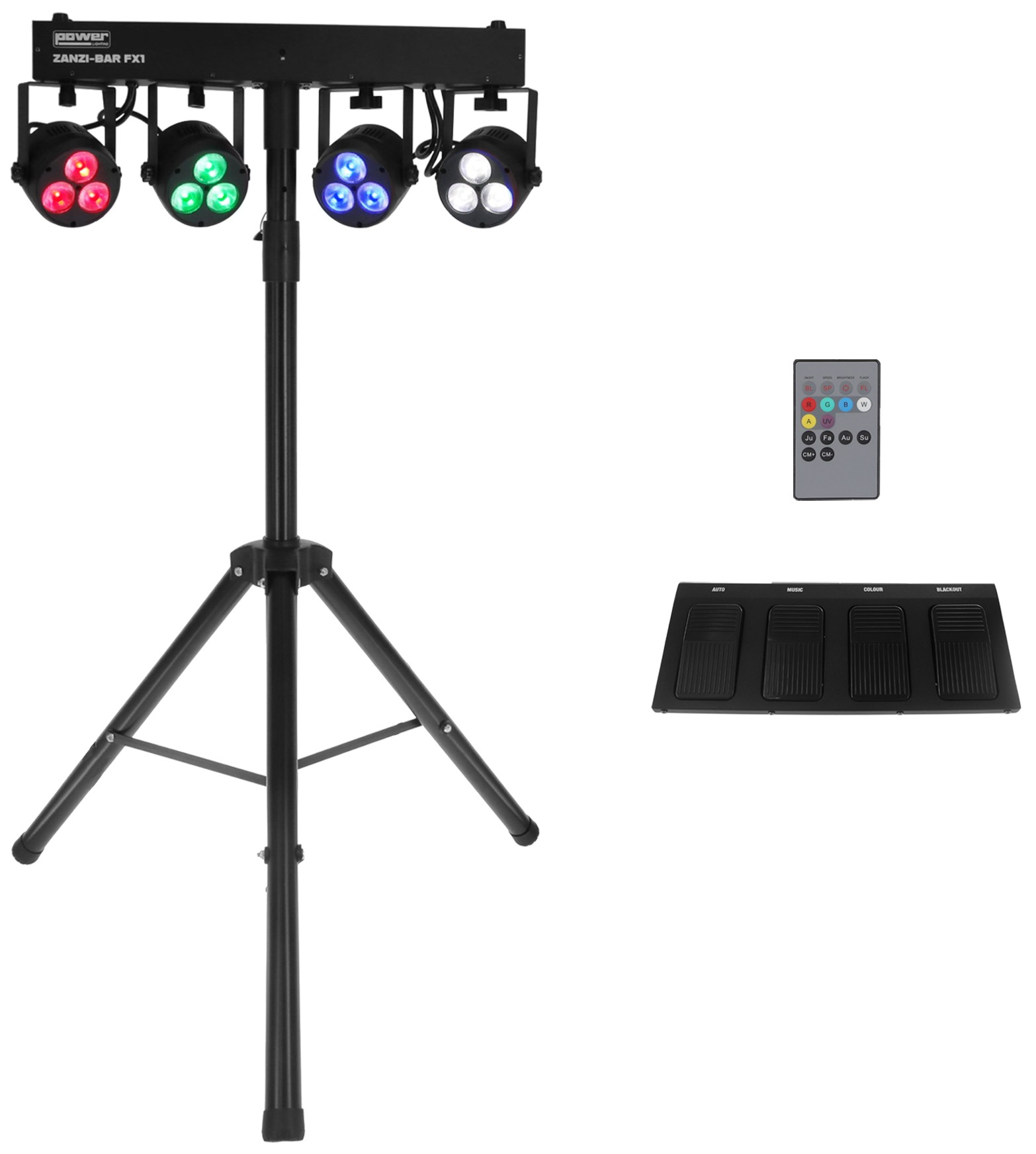 Le système Power Lighting ZANZI-BAR FX1 est une barre lighting multi effets complète. Conçu pour l’éclairage de soirées, concerts ou événements, il regroupe 4 projecteurs Par Slim à LED RGBW de 3x8W, soit une puissance totale de 80W. Son angle d’ouverture de 17° permet une couverture lumineuse précise et intense. Grâce à ses nombreux modes de contrôle (DMX, automatique, musical, pédalier, IR), cette barre s’adapte à tous les niveaux d’utilisation, du DJ mobile au technicien événementiel. Elle est livrée avec un trépied à embase 35 mm, une télécommande infrarouge, un pédalier de commande au pied et une housse de transport. Les connectiques XLR 3 points facilitent l’intégration dans des installations DMX standards. Conçue pour une mise en place rapide, la ZANZI-BAR FX1 combine simplicité, flexibilité et performance. Sa construction légère et ses accessoires inclus en font une solution fiable et polyvalente.