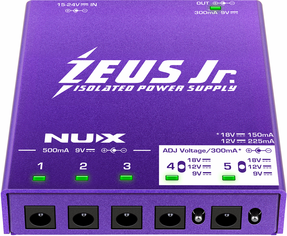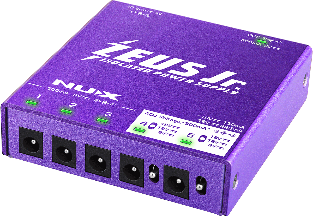 Le Zeus Junior de NUX intègre une technologie d’alimentation à découpage avec double isolation, garantissant une alimentation sans interférences. Chaque sortie DC est isolée afin d’éviter les parasites électriques, courants de masse ou bruits statiques, fréquents dans les pedalboards mixtes. Ce système offre une alimentation stable et propre à chaque pédale connectée.