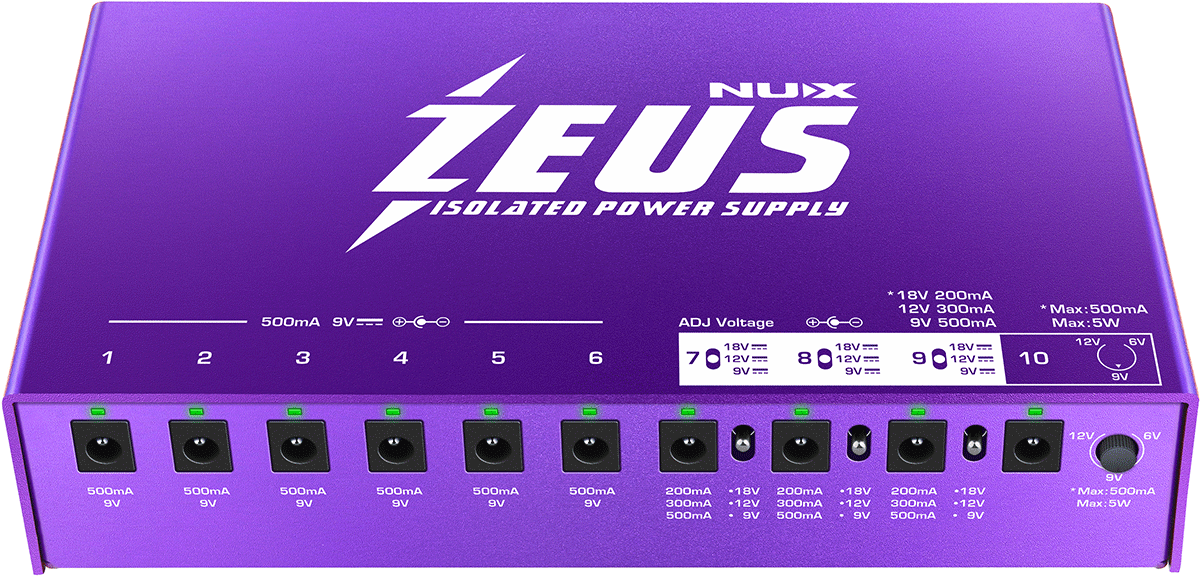 Grâce à ses alimentations à découpage et une double isolation, le NUX ZEUS supprime les interférences et les bruits de fond. Cela permet une restitution fidèle du son de chaque pédale.
